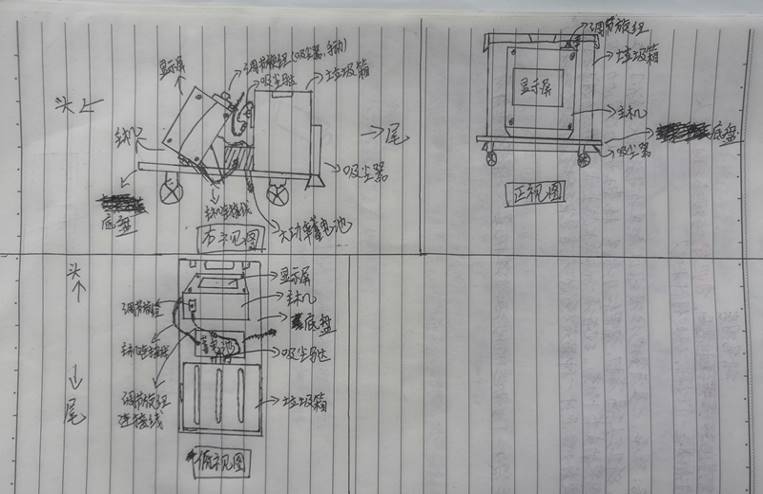 于是我萌生了发明自巡航垃圾清理机器人的想法,在老师指导下我设计制作了该项目。该项目利用优控430A控制器(PLC)经行整体控制,结合M415B步进电机驱动器控制24V20AH电池驱动两台57J09型电机提供行走动力,11.3V、5200MAH电池为垃圾收集箱内600W、电压11.3的涵道风扇提供动力,利用负压吸收细小垃圾;摄像头配合机械臂抓取较大块垃圾。可在复杂路面上实现自动巡航、垃圾清理及初步分类的新型清洁机械,旨在提高城市清洁工作效率、降低人力成本。