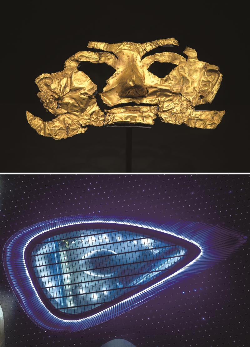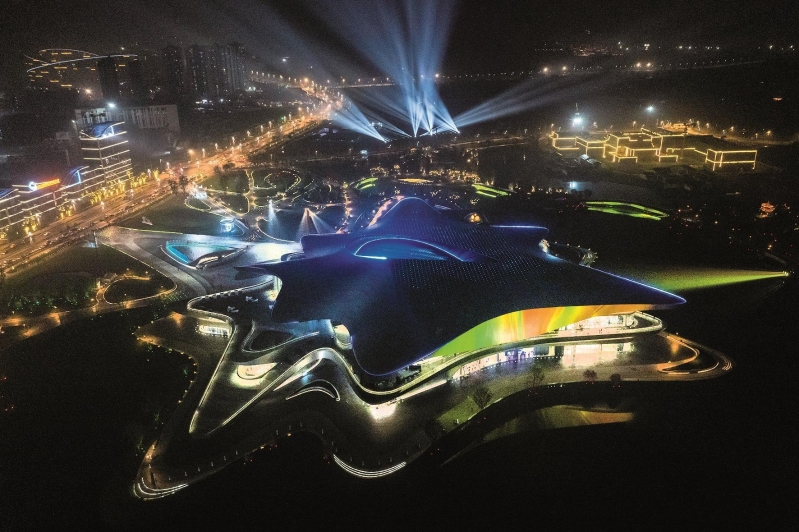 成都科幻馆,其屋顶上的“科幻之眼”灵感来源于古蜀文明中三星堆金面具上的“古蜀之眼”。 新华社记者 沈伯韩 摄