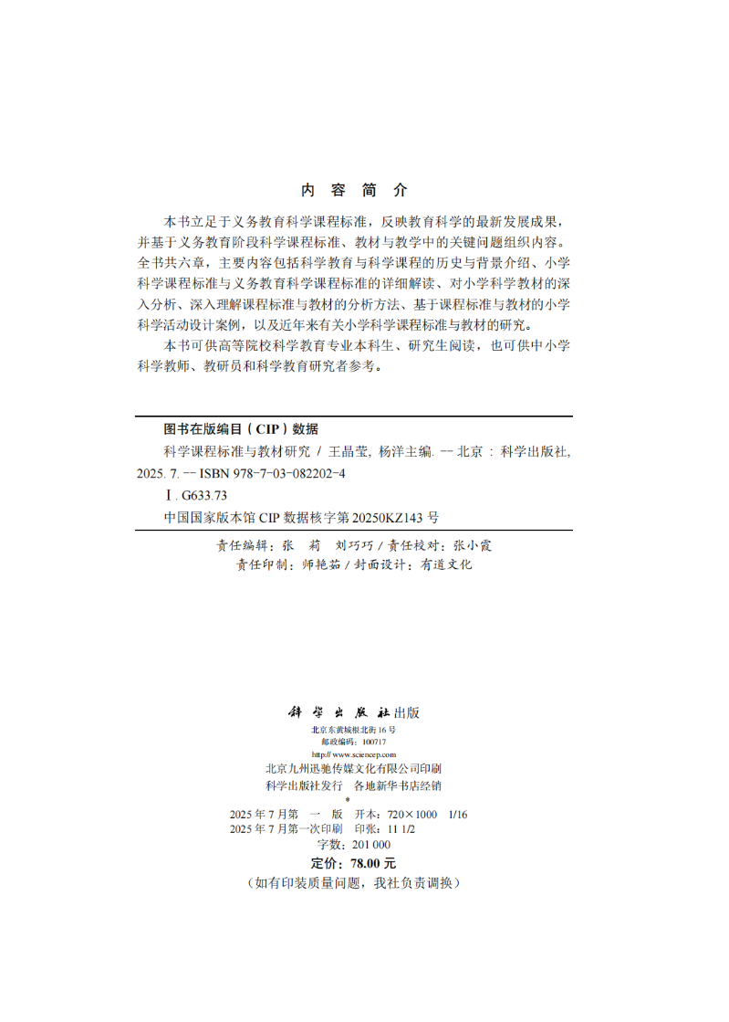 科学课程标准与教材研究